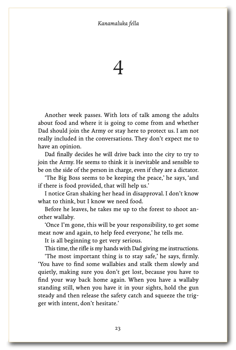 Her first novel, Kanamaluka fella, is a very human story that reflects on the devastation climate change will bring on a small community.